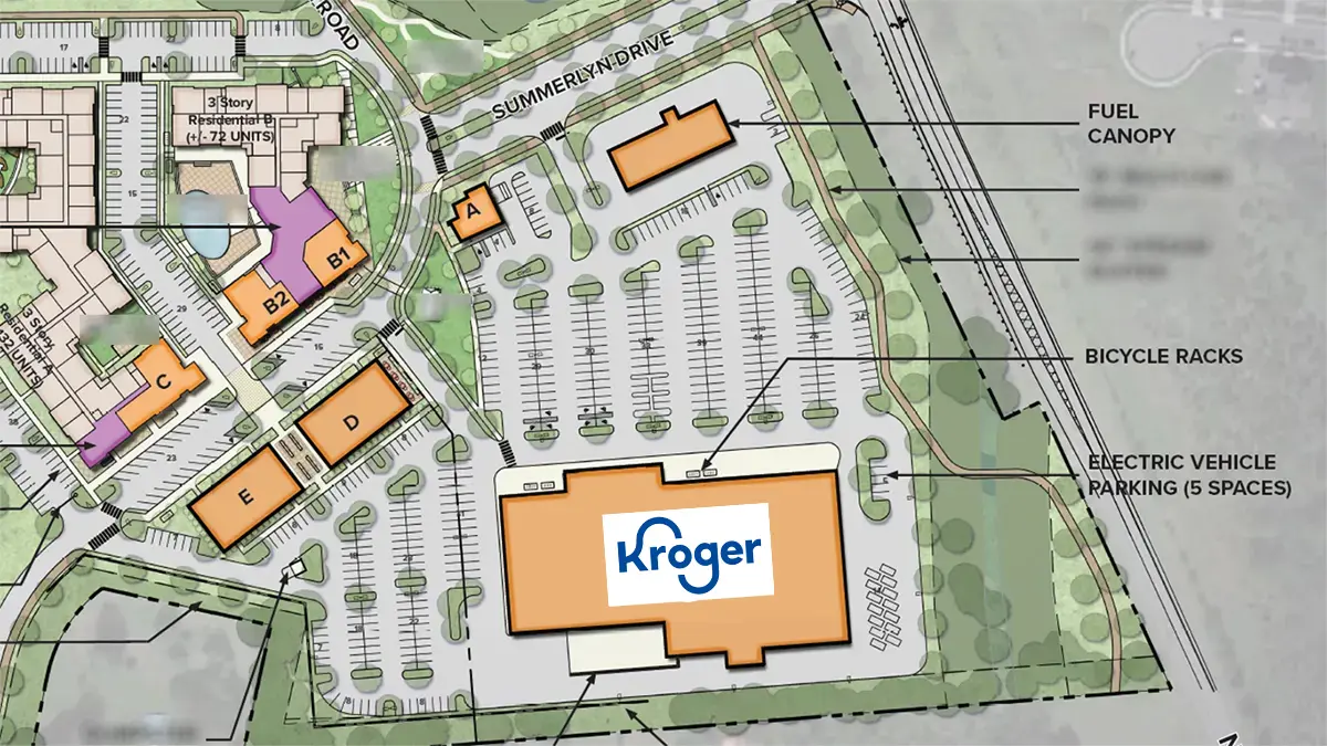 78,000 sq ft of the total commercial space will be the new Kroger Marketplace, which is significantly larger than a standard grocery (for comparison, Nolensville’s Publix is 48,000 sq ft.) and that’s because Kroger Marketplaces also include a department store with home goods and apparel, more like a Super Target or Walmart Supercenter.